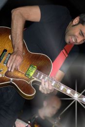 Chitarre: Gibson Les Paul Deluxe Gold Top del ’71, Heritage semiacustica, Taylor acustica, Fender Strato USA, baritone guitar Danelectro, Epiphone Supernova, mandolino e dobro elettrificati Oregon, lap steel handmade by Ermanno Pasqualato, ukulele elettrificato Vintage, ukulele acustico uke.it
